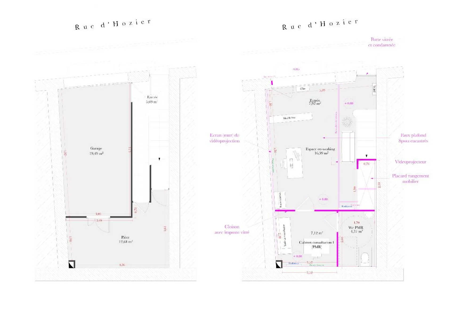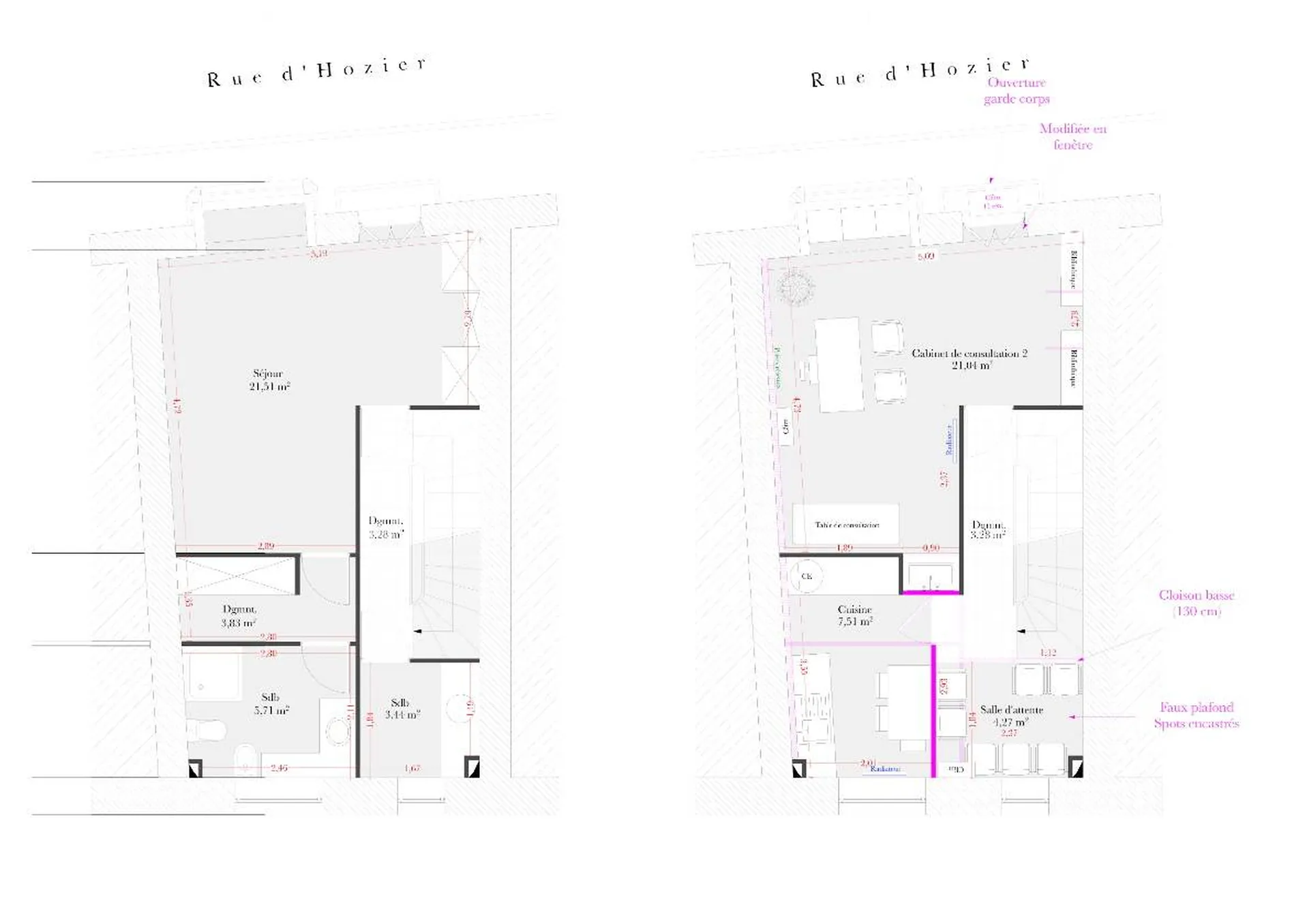 La cliente, propriétaire d’une maison de ville à deux étages située à Salon-de-Provence, a souhaité réaménager son bien en un centre médical, comprenant plusieurs cabinets de consultation. Afin de répondre à cette demande, nous avons élaboré plusieurs esquisses d’aménagement, en prenant en compte à la fois l’accessibilité pour les personnes à mobilité réduite et les besoins spécifiques de la cliente pour son futur centre médical.