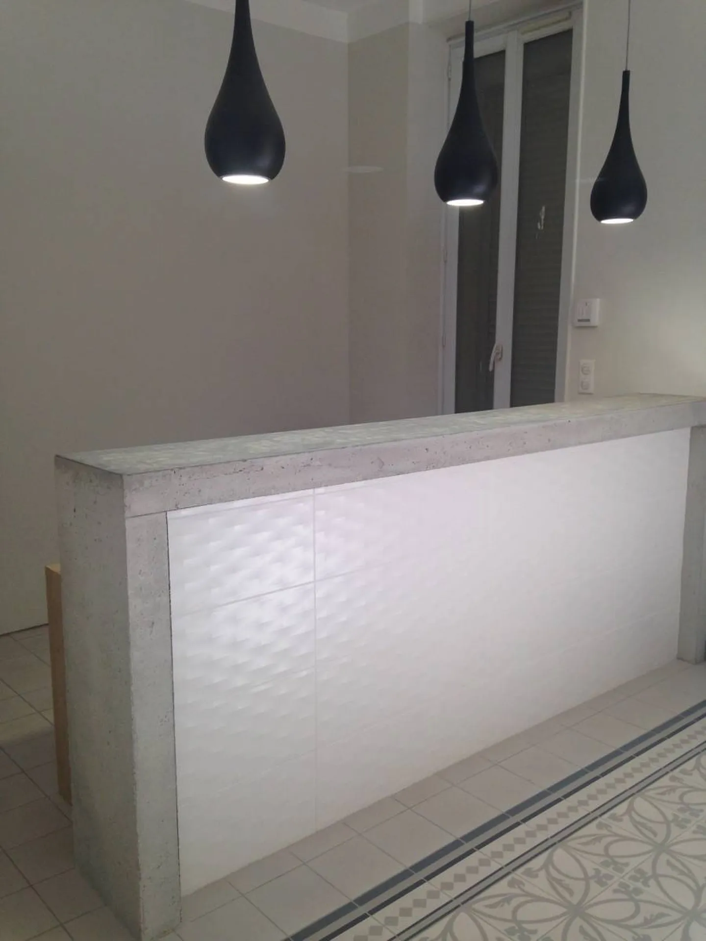 modernité en utilisant des matériaux nobles : la banque d'accueil en