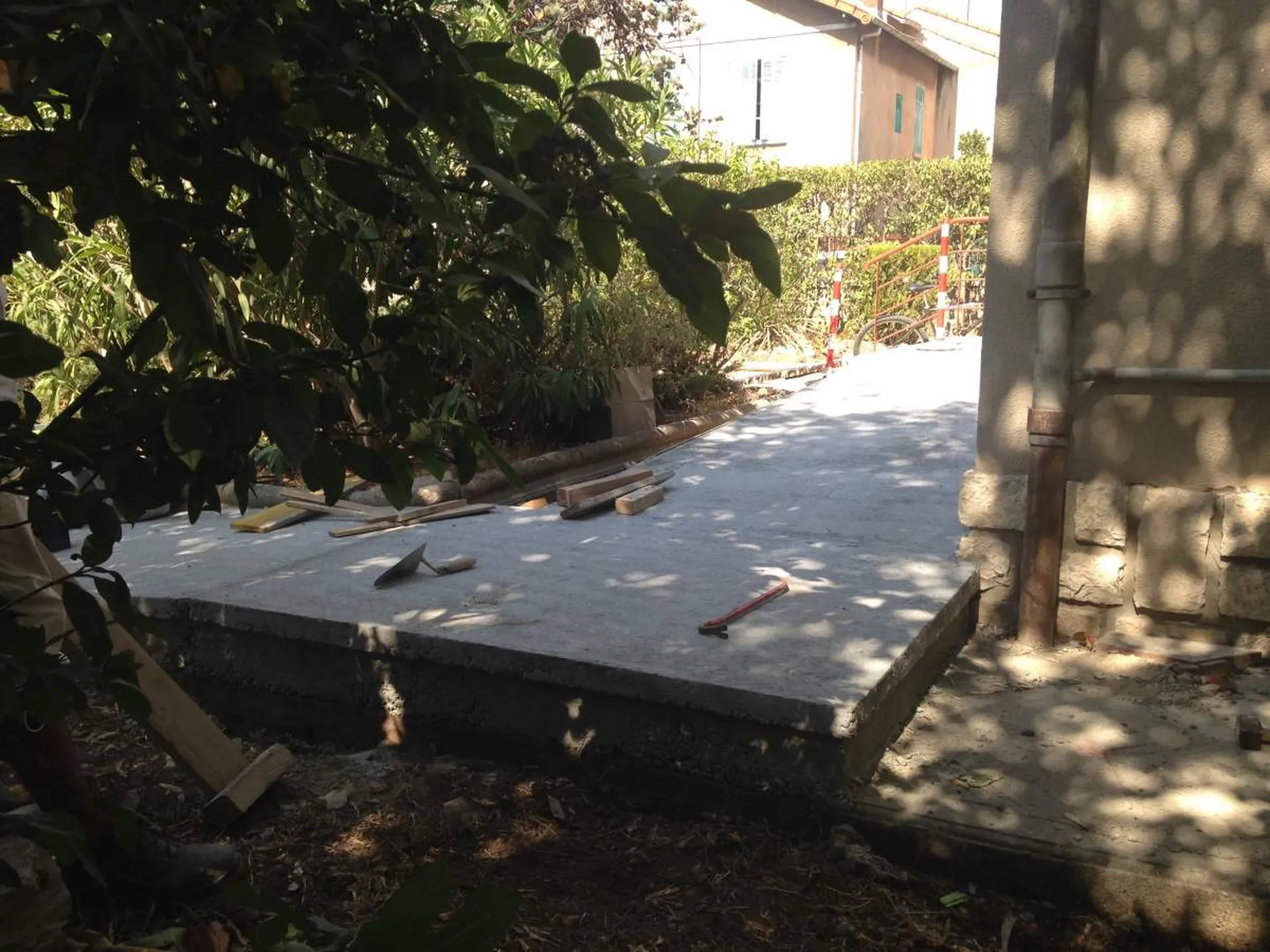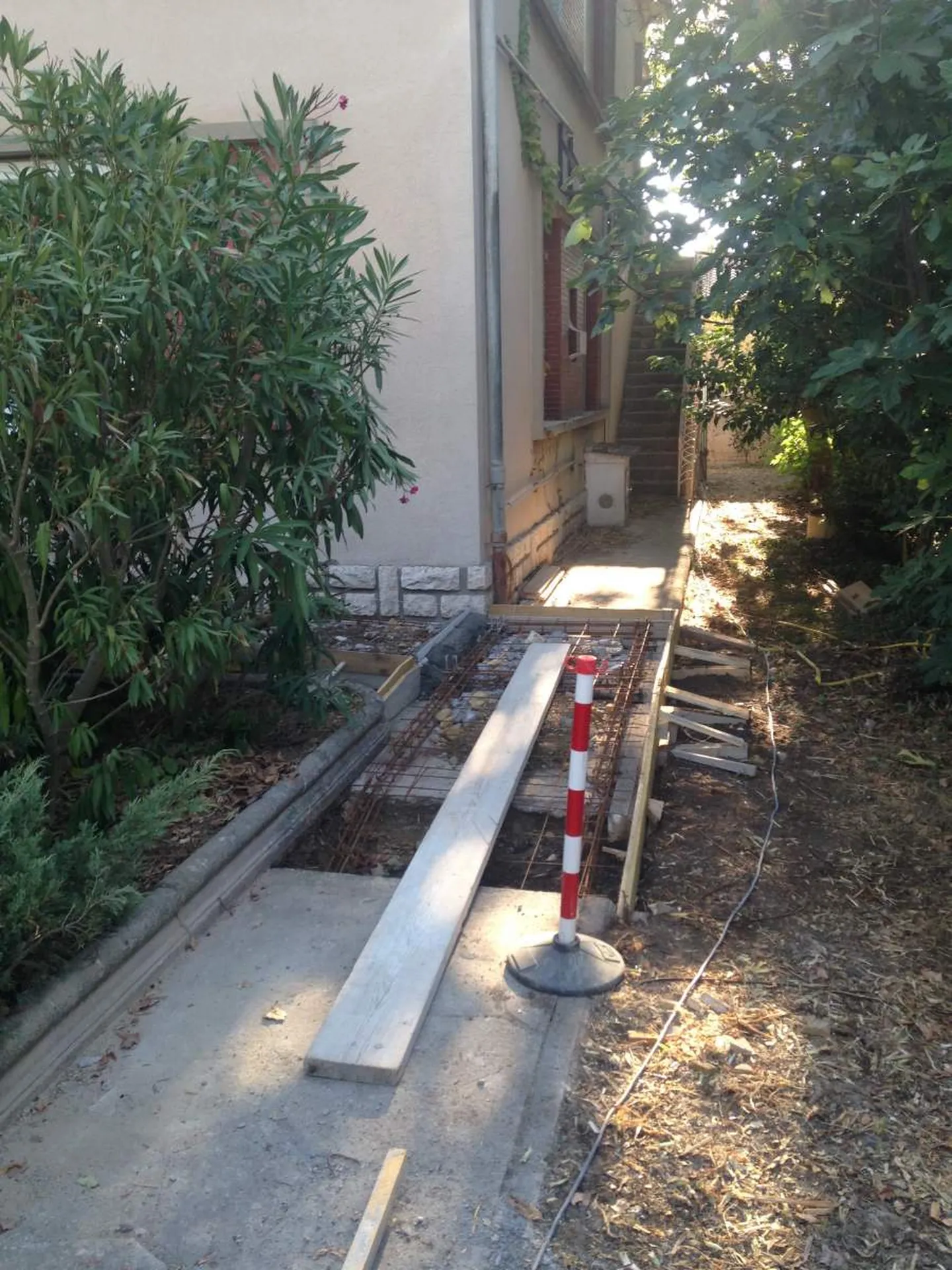 Nous avons donc dû créer une rampe d'accès PMR, répondant aux normes (avec le bon pourcentage de pente, les bons matériaux etc...).
