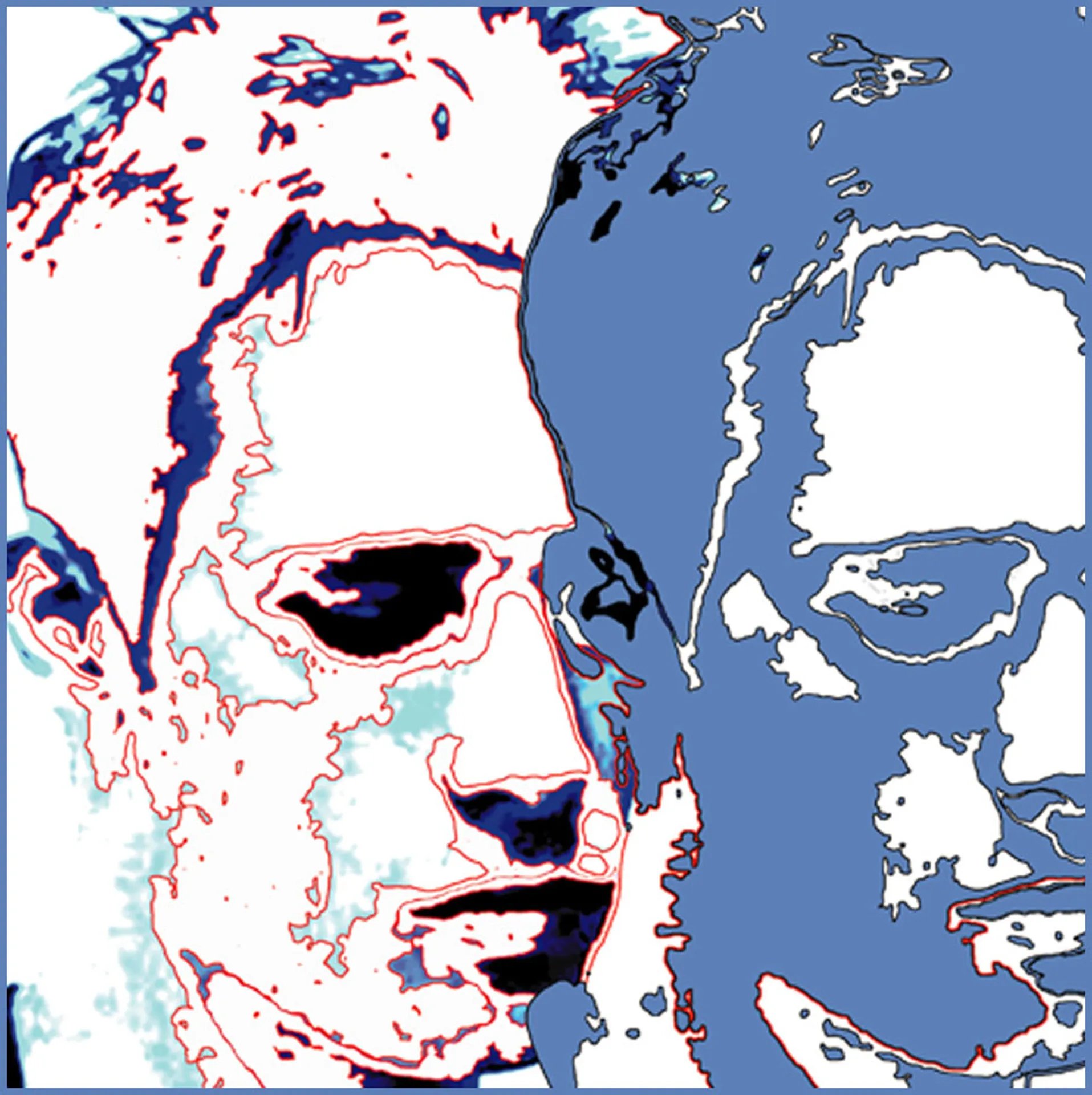 Il s'agit d'un travail de peintures à l'acrylique et d'impressions numériques sur toiles ou panneaux de bois.