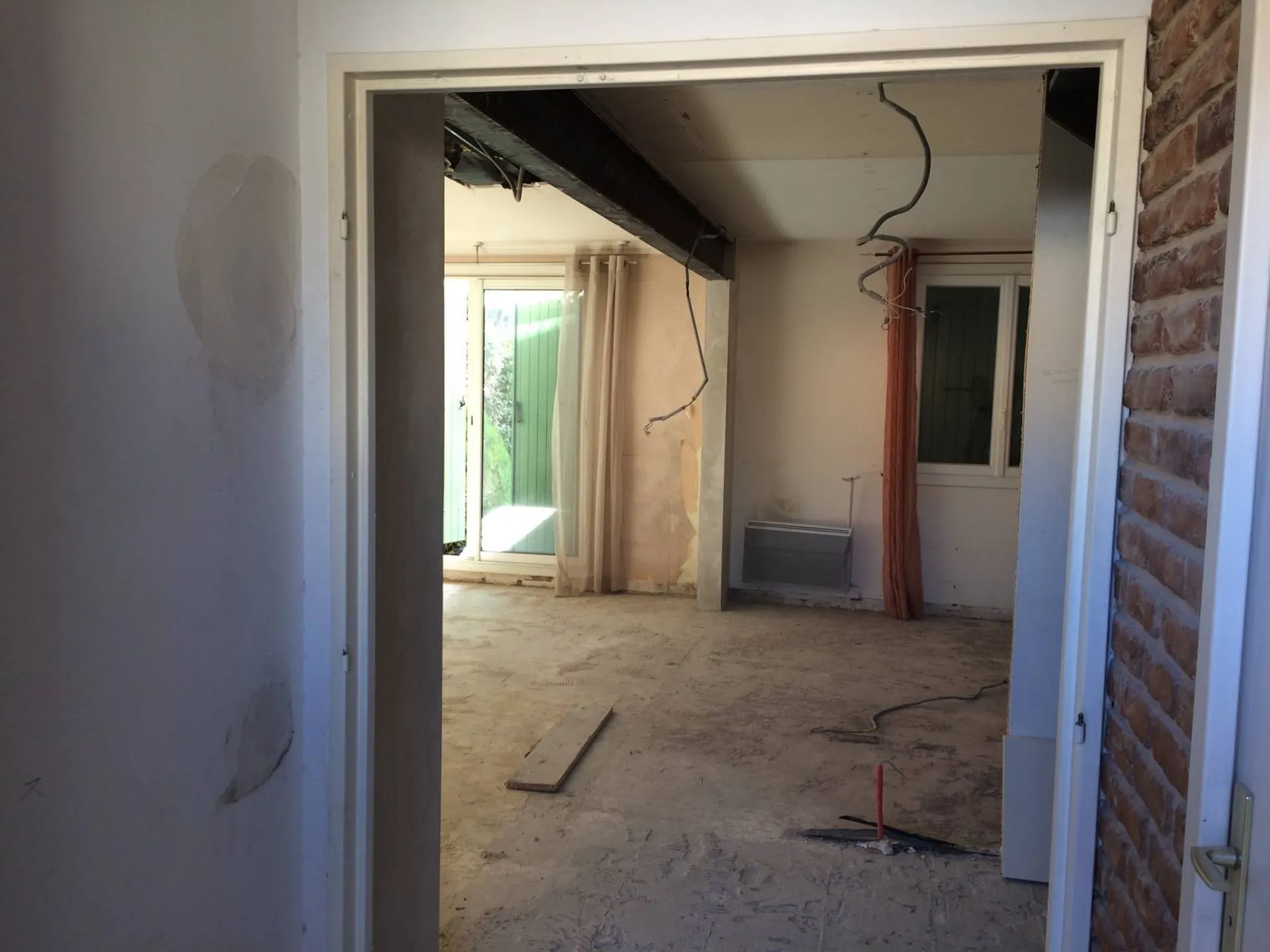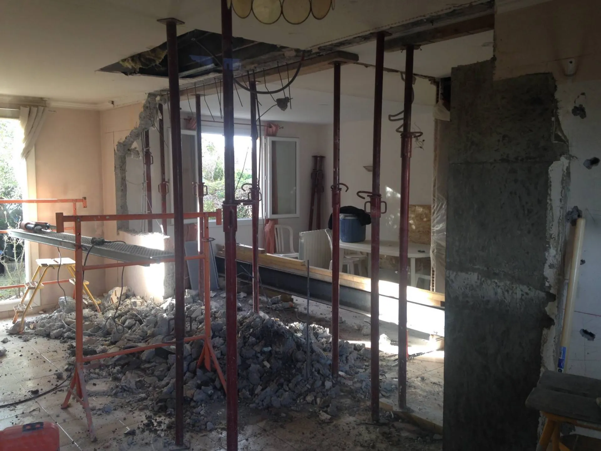 Les propriétaires d'une maison individuelle à Miramas ont souhaité agrandir leur pièce à vivre en créant une ouverture dans un mur porteur, séparant le séjour d'une chambre.