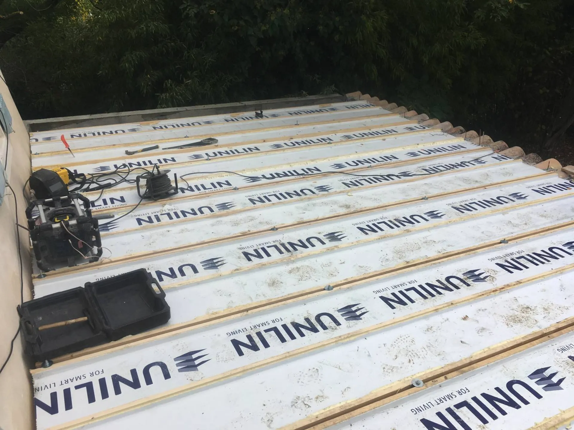 L'entreprise est également chargée de réaliser la toiture de l'extension : cette dernière est en panneaux de toiture isolants afin de pouvoir profiter d'un maximum de hauteur sous un plafond rampant.