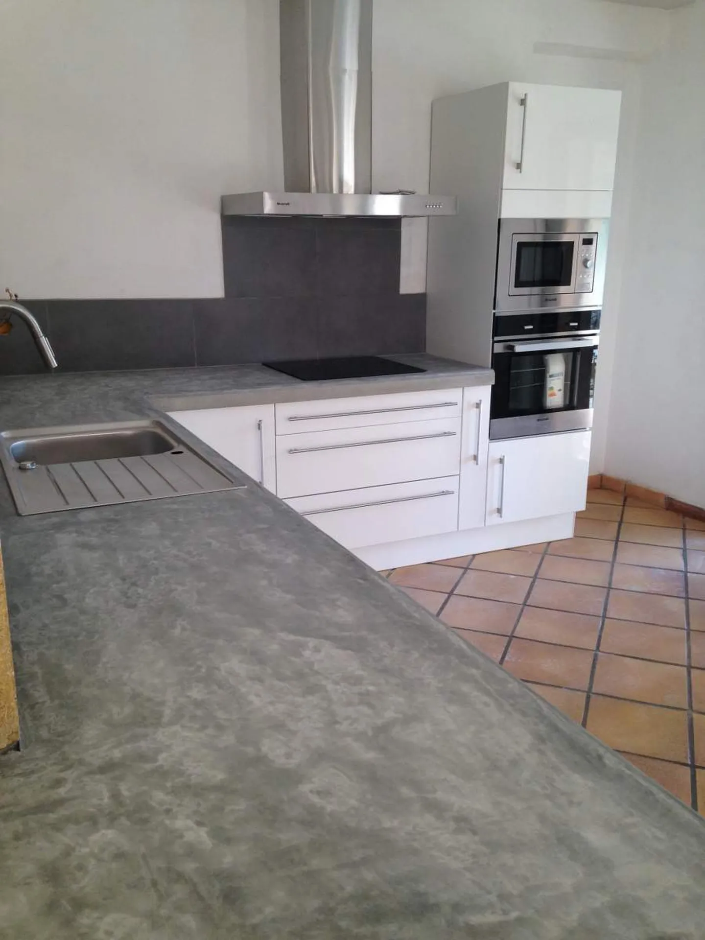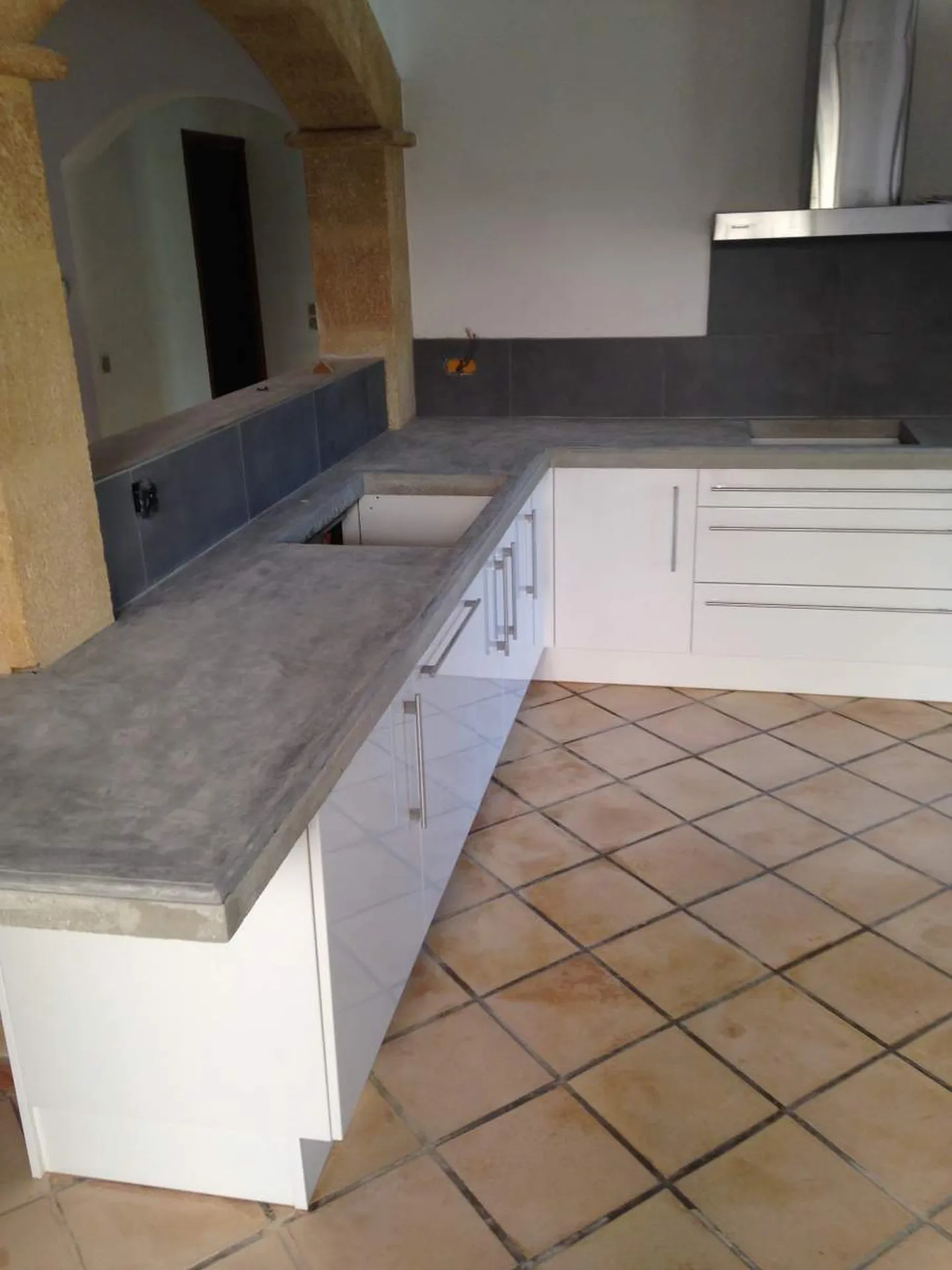 Dans une maison individuelle située à Grans (13450), nous avons réalisé la pose d’un plan de travail en béton lissé, apportant à la cuisine une esthétique contemporaine et épurée. Le chantier s’est déroulé sur une semaine, incluant la préparation, le coulage, le lissage et les finitions de protection.