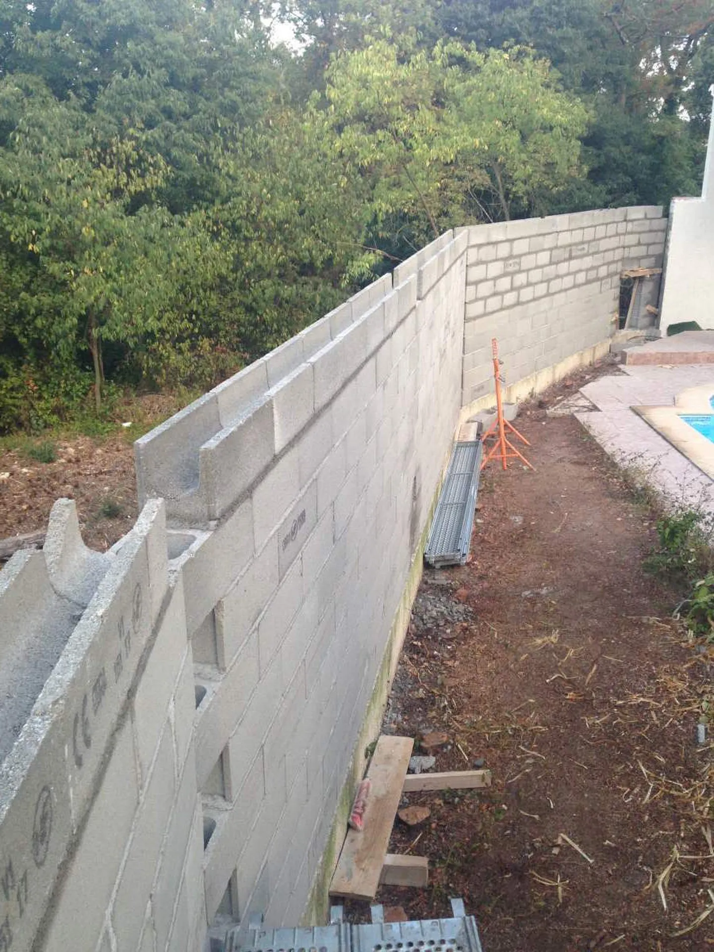 La propriété de notre client était séparée de celle de son voisin par une simple haie : il souhaitait faire réaliser un mur de clôture maçonné le long de la piscine afin de se protéger du vis à vis.