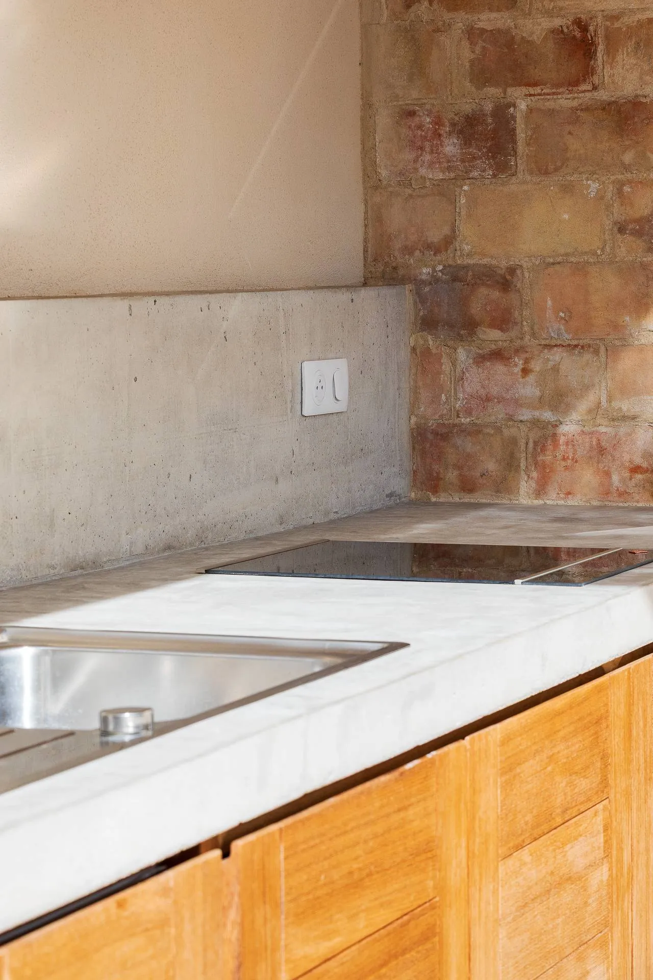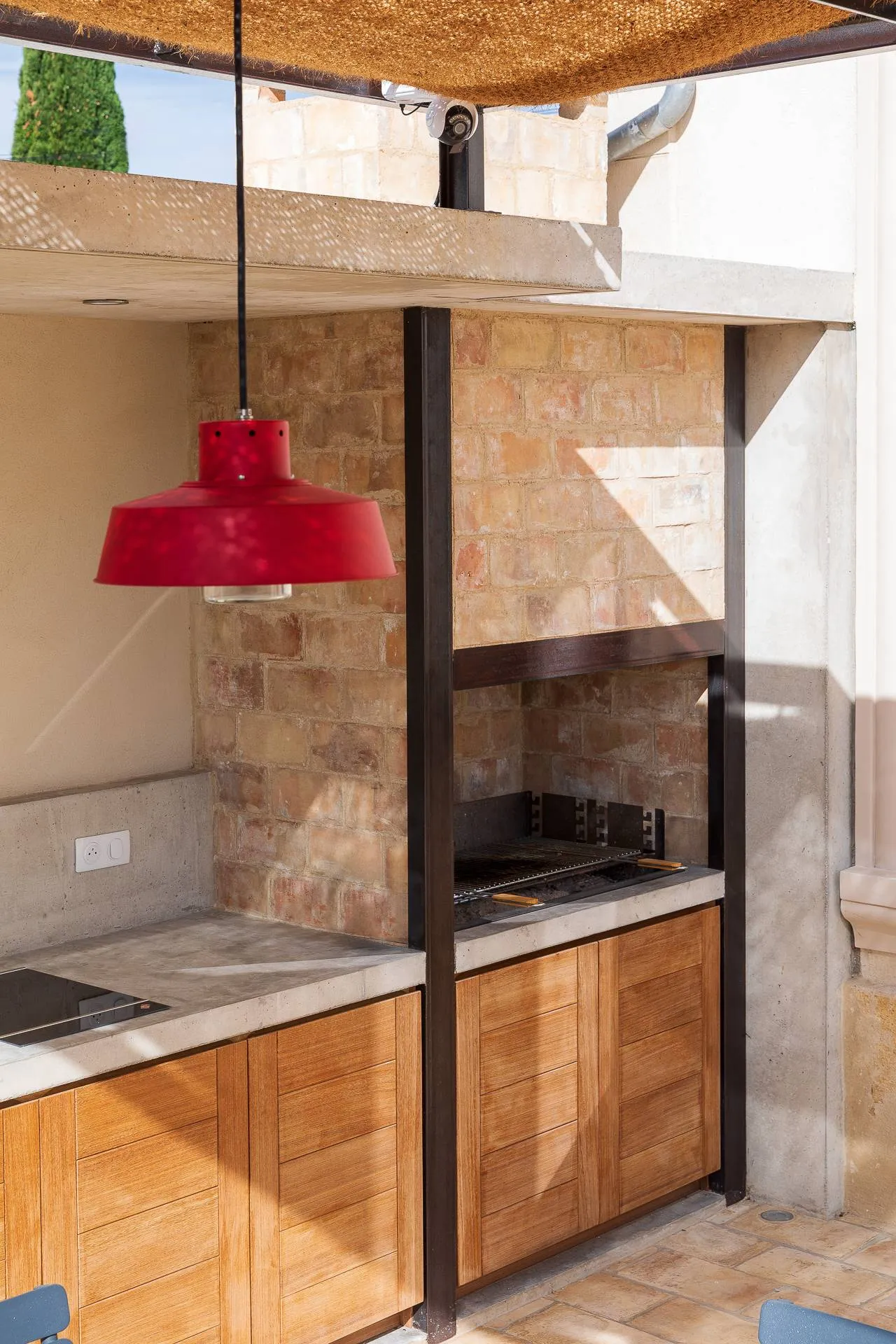 Les portes de placards de la cuisine d’été ont été réalisées sur mesure par l’un de nos sous-traitants menuisiers, garantissant une parfaite adaptation aux contraintes du projet et une finition de qualité.