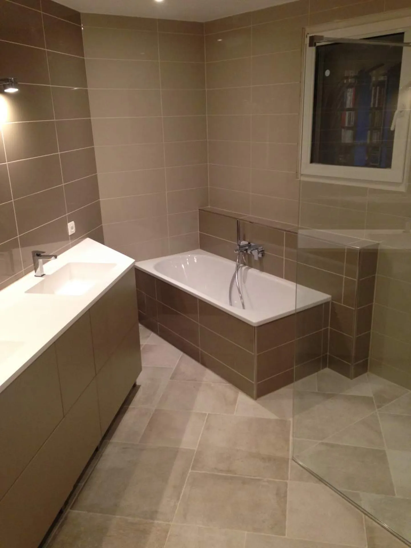 Ici, nous avons réalisé la rénovation d'une salle de bains à Salon de Provence du début des années 90, afin de la remettre " aux goûts du jour ".