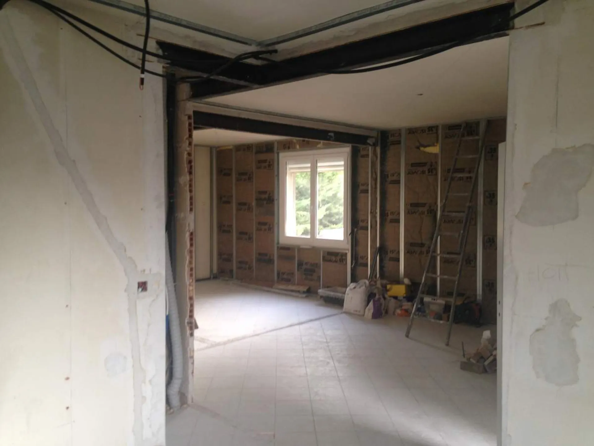 Nous avons réalisé l'isolation des combles ainsi que des doublages périphériques en placo, habillage des poutres métalliques, reprise des sols et pose de carreaux rectifiés(imitation parquet).